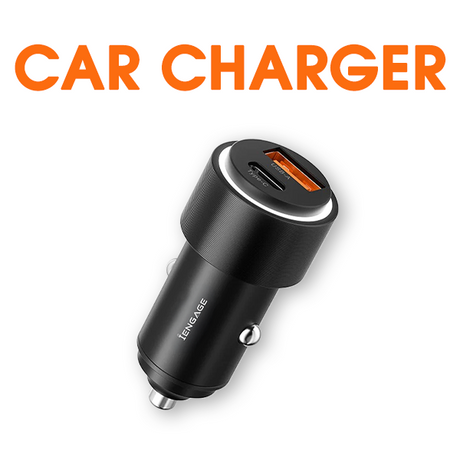 iEngage 120W 4In1 Car Charger W/Retractable Cables (Usb-C/Lightning) & Usb Ports