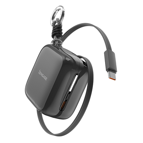 iEngage Portable 10000 mAh Powerbank Bank With Retractable Cable 40W (Black)